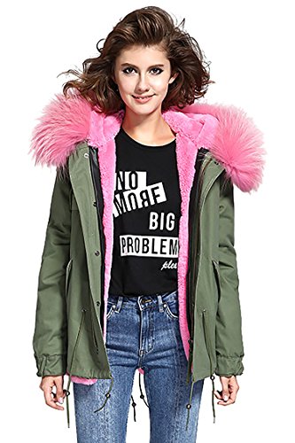 S.ROMZA Women Thick Faux Fur Parka Hooded Coat Winter Jacket Detachable Fur Trim (US4, Army Green & Pink Fur) is one of the